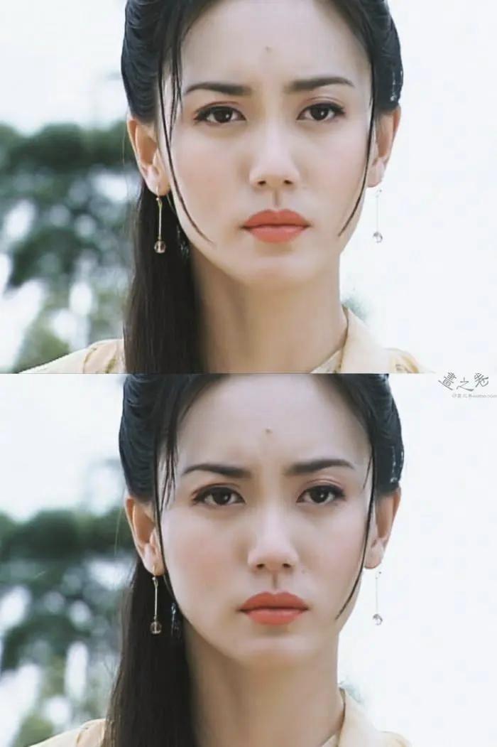 剧中郭妃丽的造型堪称古装美学典范:发髻高挽缀以绒花,眉间一点朱砂痣,紫色仙袍随风飘动时仙气飘飘。尤其是她低头浅笑的瞬间,既有仙子的高贵清冷,又带着凡人的温柔缱绻。这种“可远观而不可亵玩”的气质,让牡丹仙子成为仙侠剧中难以超越的经典形象。